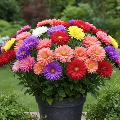 - Produces a mix of colorful daisy-like flowers in pink, purple, white, and blue