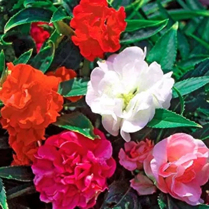 Balsam Mixed is a vibrant flowering plant variety known for its bright, colorful, and abundant blooms in a mix of red, pink, white, orange, and purple shades.