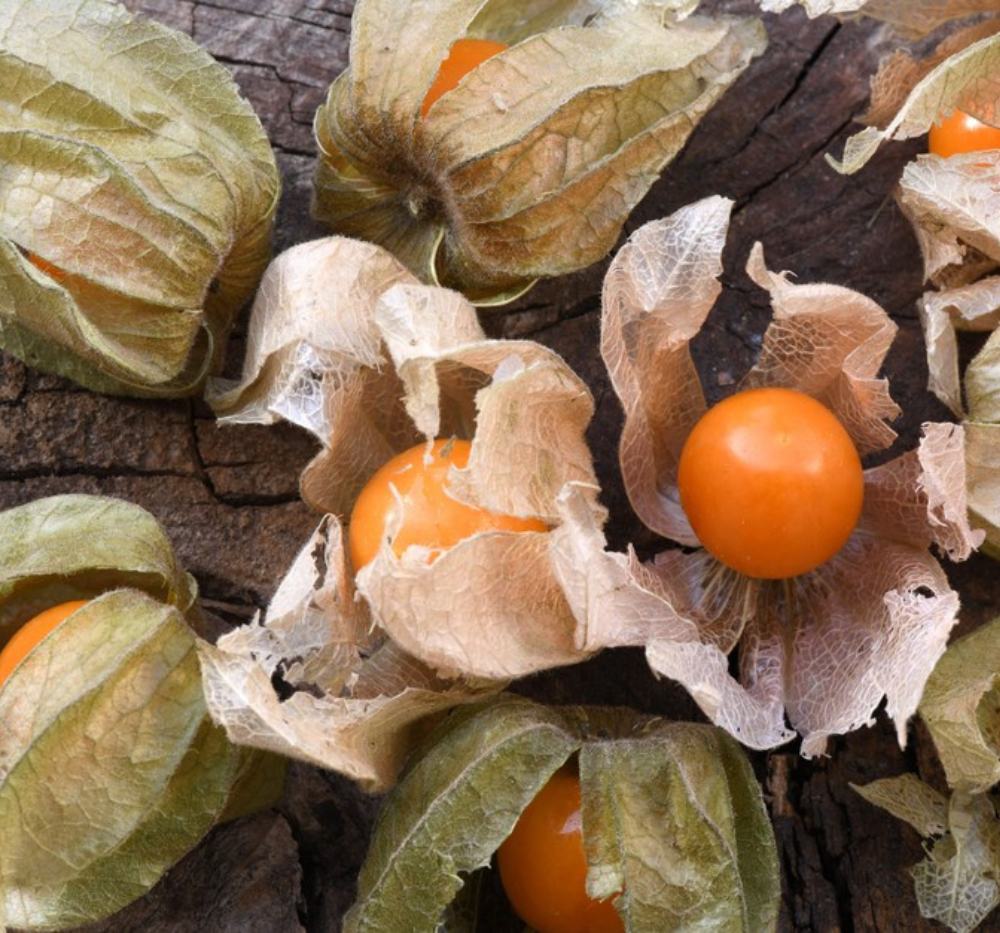 Cape Gooseberry, also known as Physalis peruviana, is a small, golden-yellow fruit encased in a papery husk