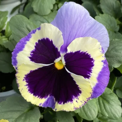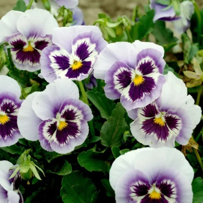F1 Pansy Swiss Giant Mixed is a premium hybrid flowering plant variety known for its large, vibrant, and colorful blooms in mixed shades such as purple, yellow, white, blue, and orange, often with blotched patterns.