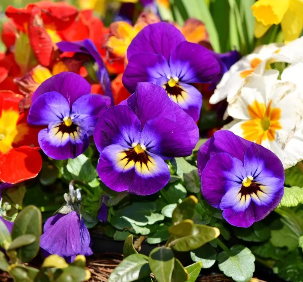 • Produces large, vibrant flowers in mixed colors: purple, yellow, white, blue, and orange