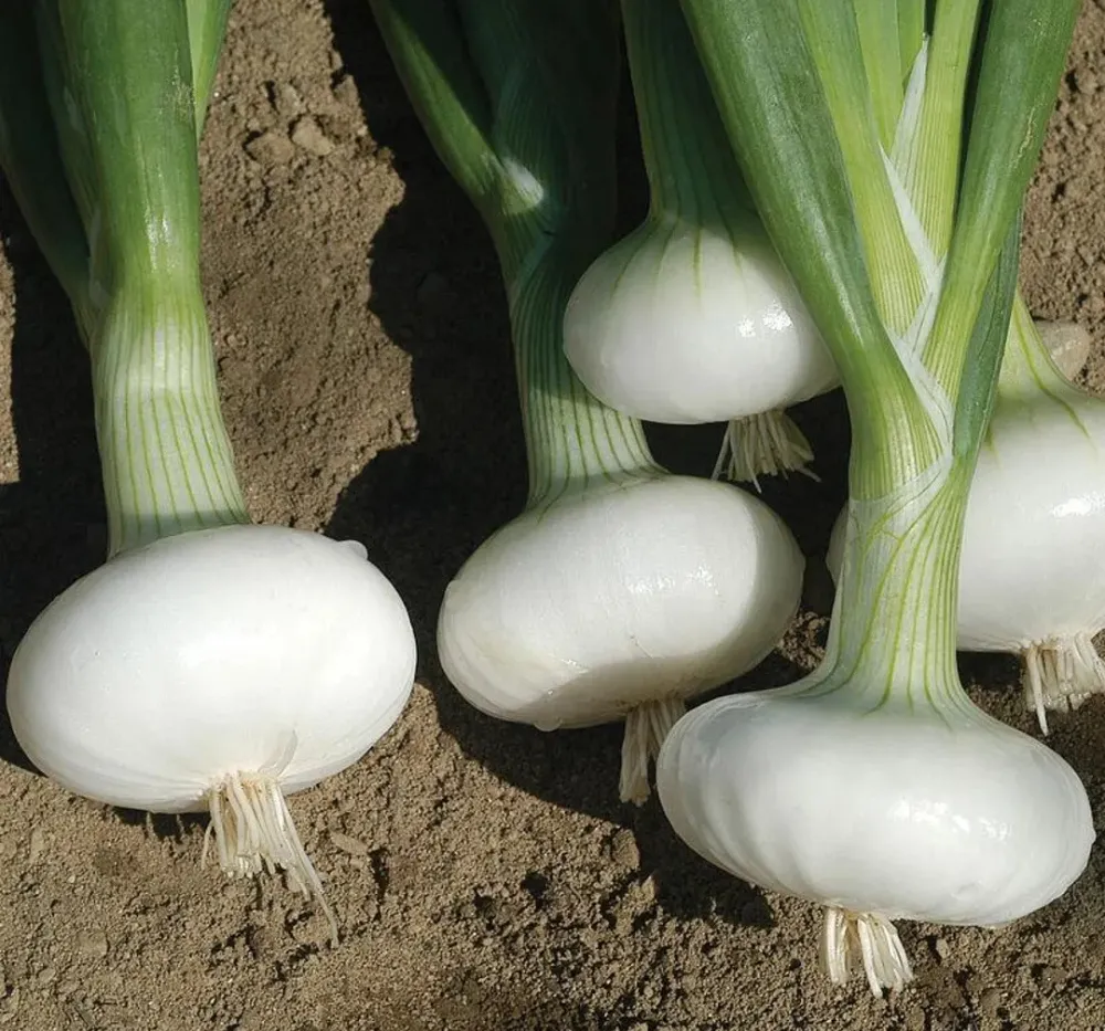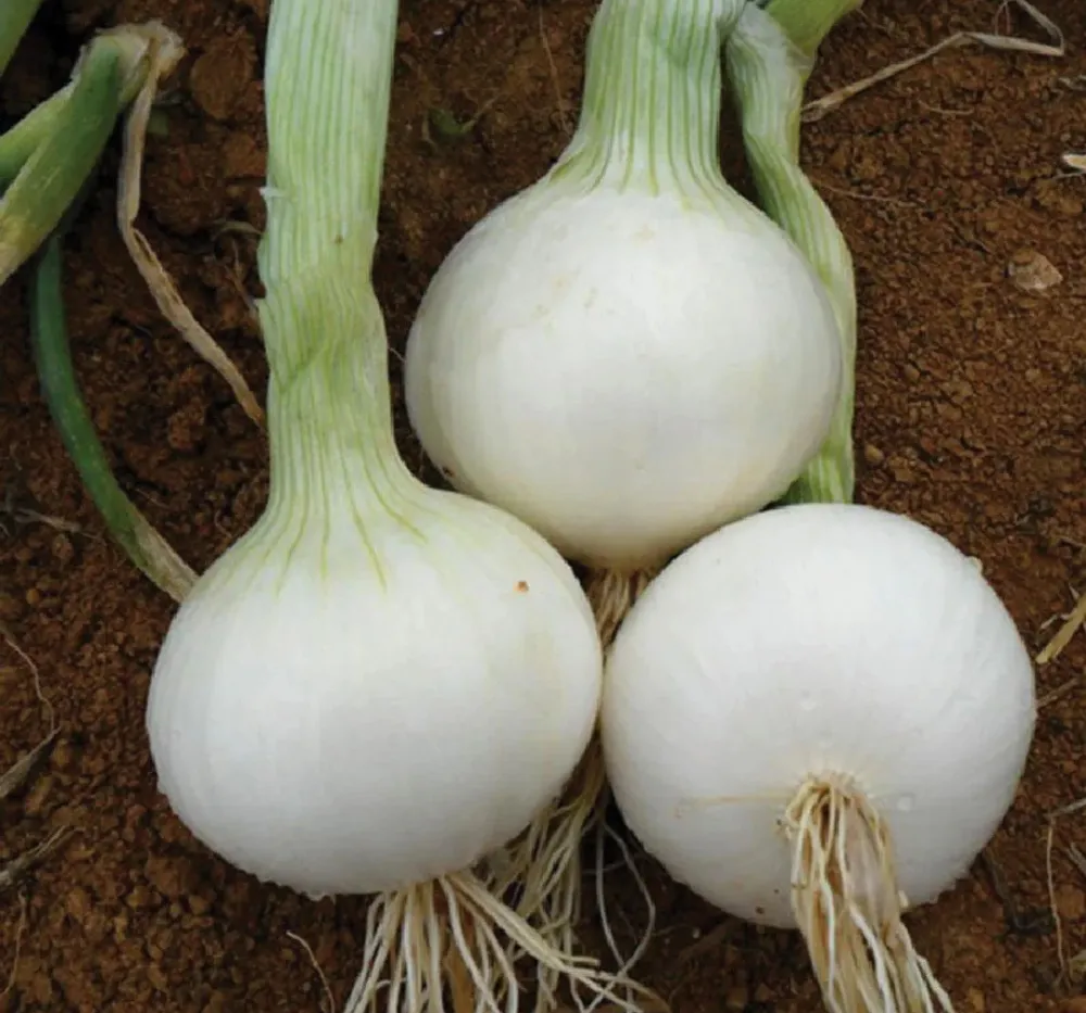 Exotic White Globe Variety – Unique, large white onions with superior flavor, firmness, and shelf-life