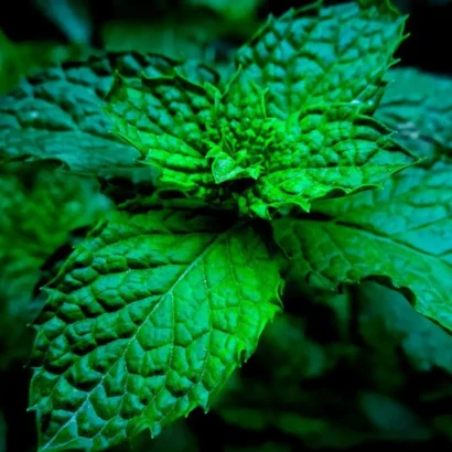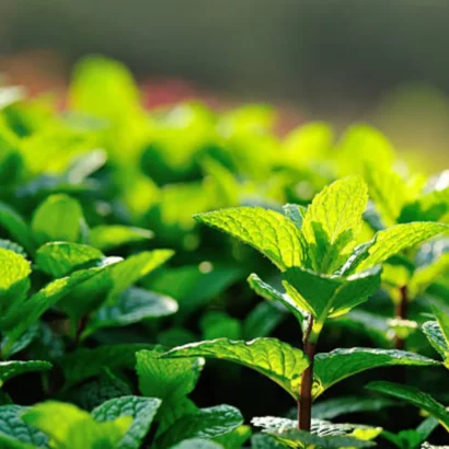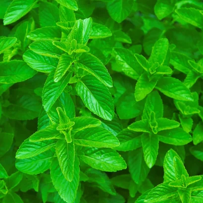 Peppermint, known as Pudeena in India, is a fragrant perennial herb with vibrant green leaves and a refreshing minty aroma.