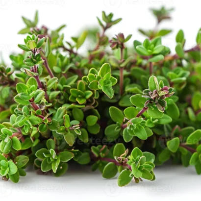 Thyme is a fragrant perennial herb with small, green leaves and a strong, earthy aroma.